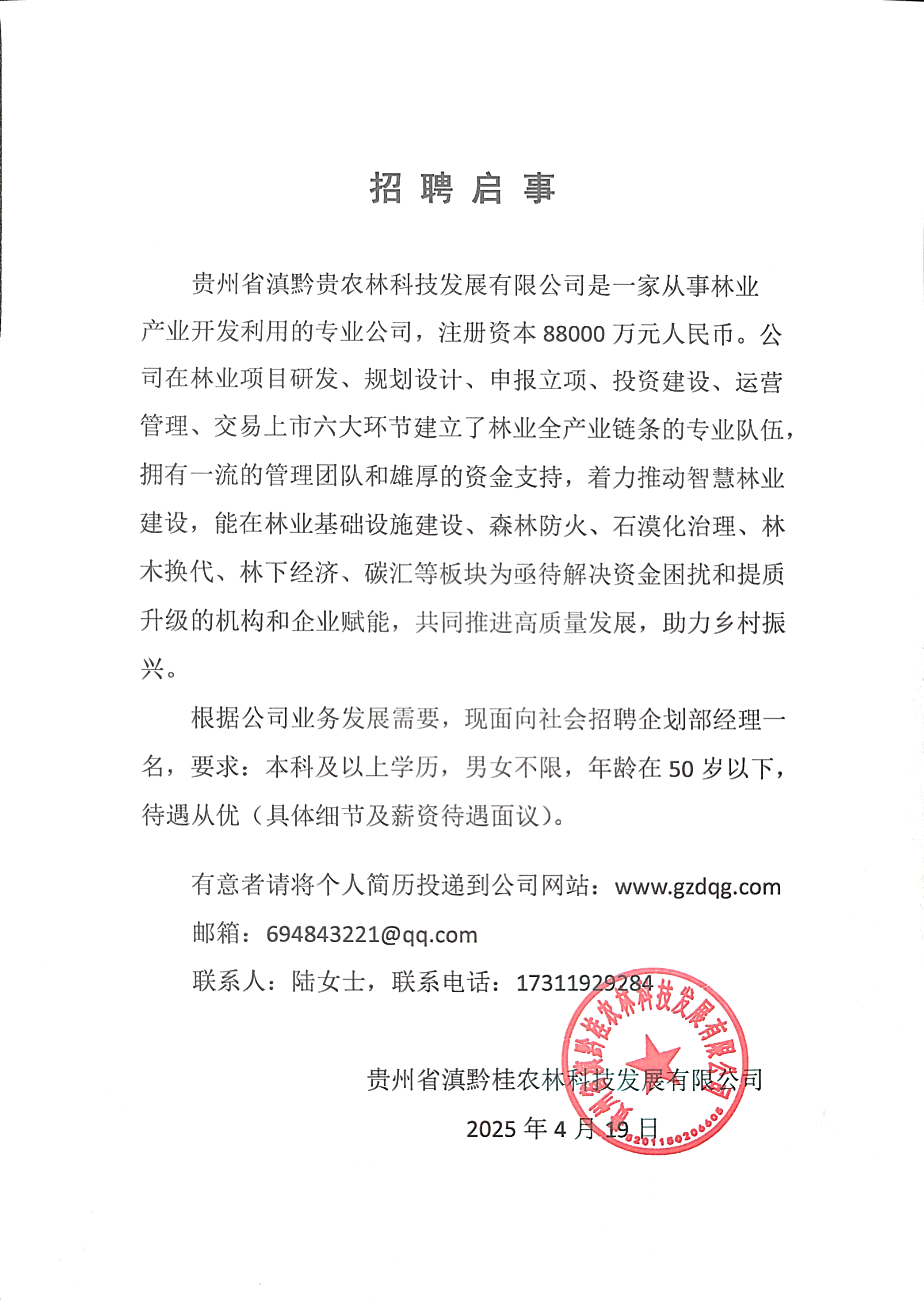 人才招聘-企划部经理一名
